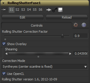 This Fuse tries to remove the shearing distortion that appears in footage shot with a digital camera. While it doesn't require eyeon's Dimension plugin, it does require motion vectors in the input image, which can be pre-rendered by Dimension's OpticalFlow tool.